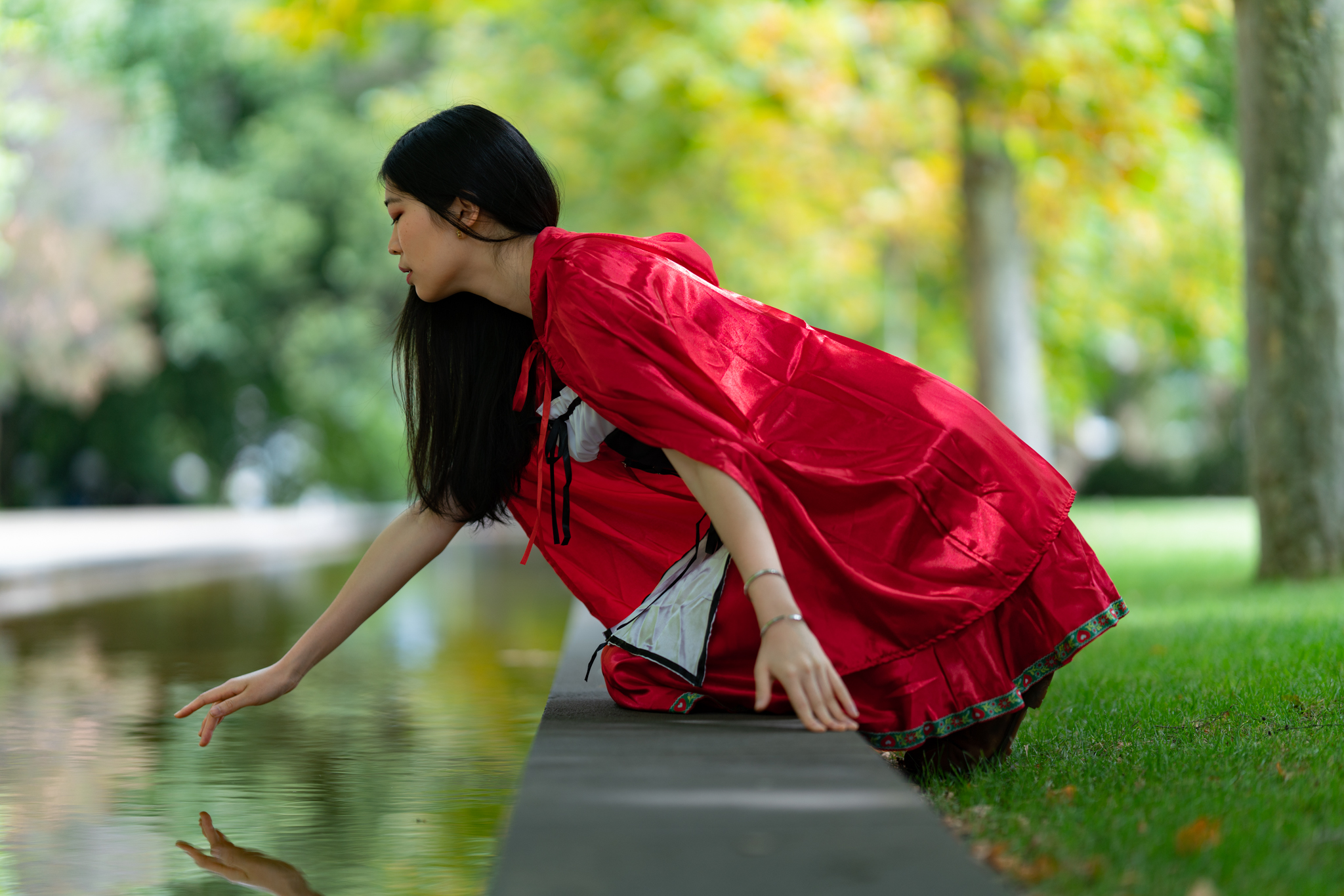 Little Red wandered. And wandered. And wandered some more. Through the empty veins of the city. Until finding her reflection. In a sun-lit lake.