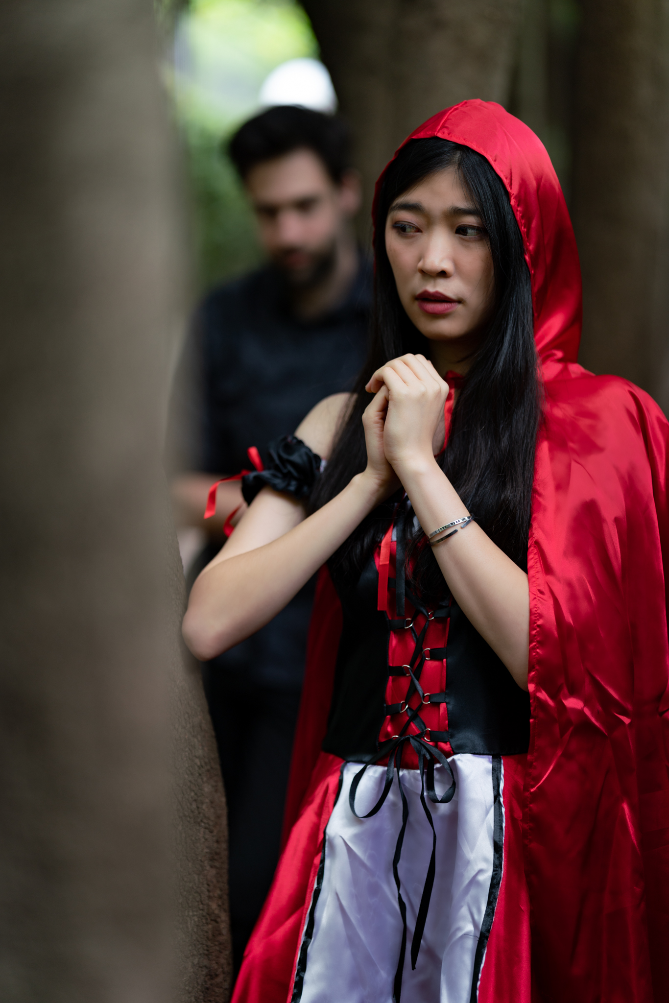 Little Red checks her basket, to find nothing. But an empty hole. She looks at Wolfgang, with her big brown eyes, and asks, “Why did you follow me like a creep?”