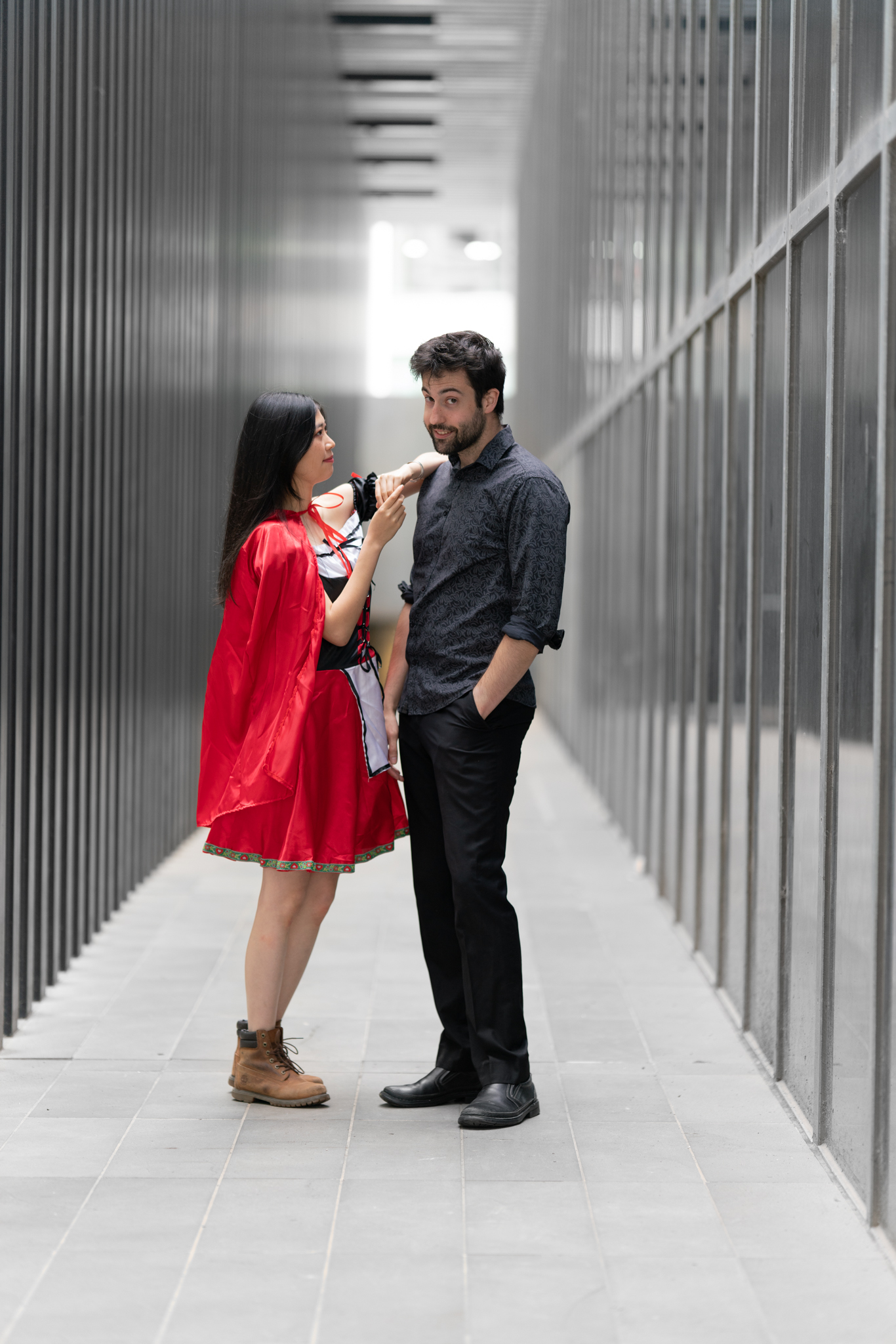 After coming back from her search. For something. Little Red spots Wolfgang. In the corner of her eye. Standing awkwardly, watching her long black hair flow in the wind.