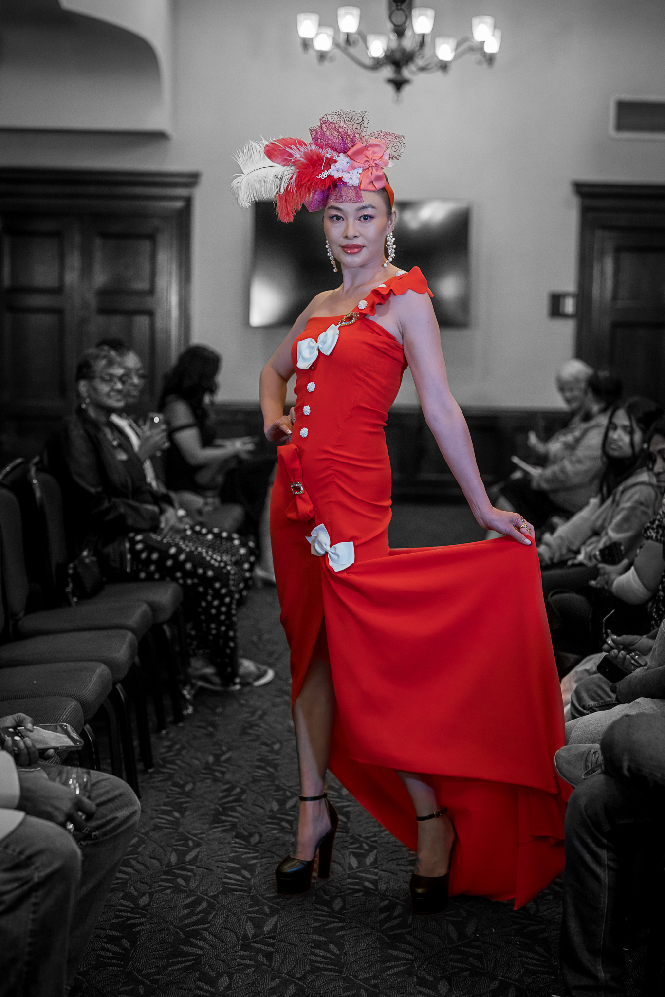 “It was after my debut at LAFW. The modeling agency, said come back down. We have another show for you to be in. I was excited… more success. I get there. It is a lobby shoot at a magnificent theater that was promised to be the next venue for my fashion show. The piece was made for a holiday event that was supposed to be a runway, not a photoshoot. Promises unkept.