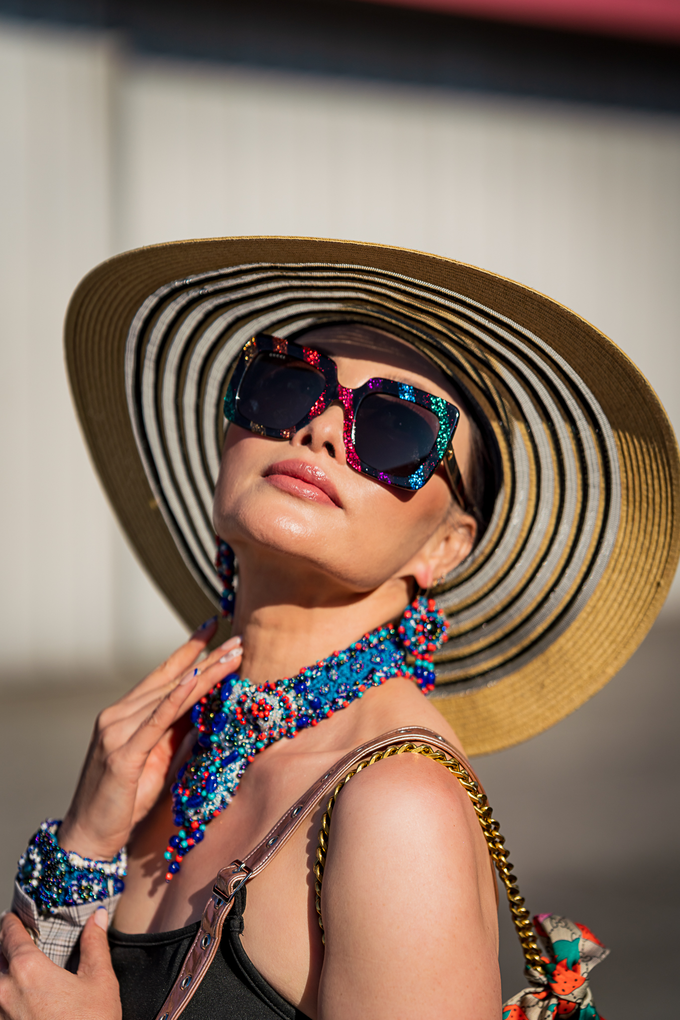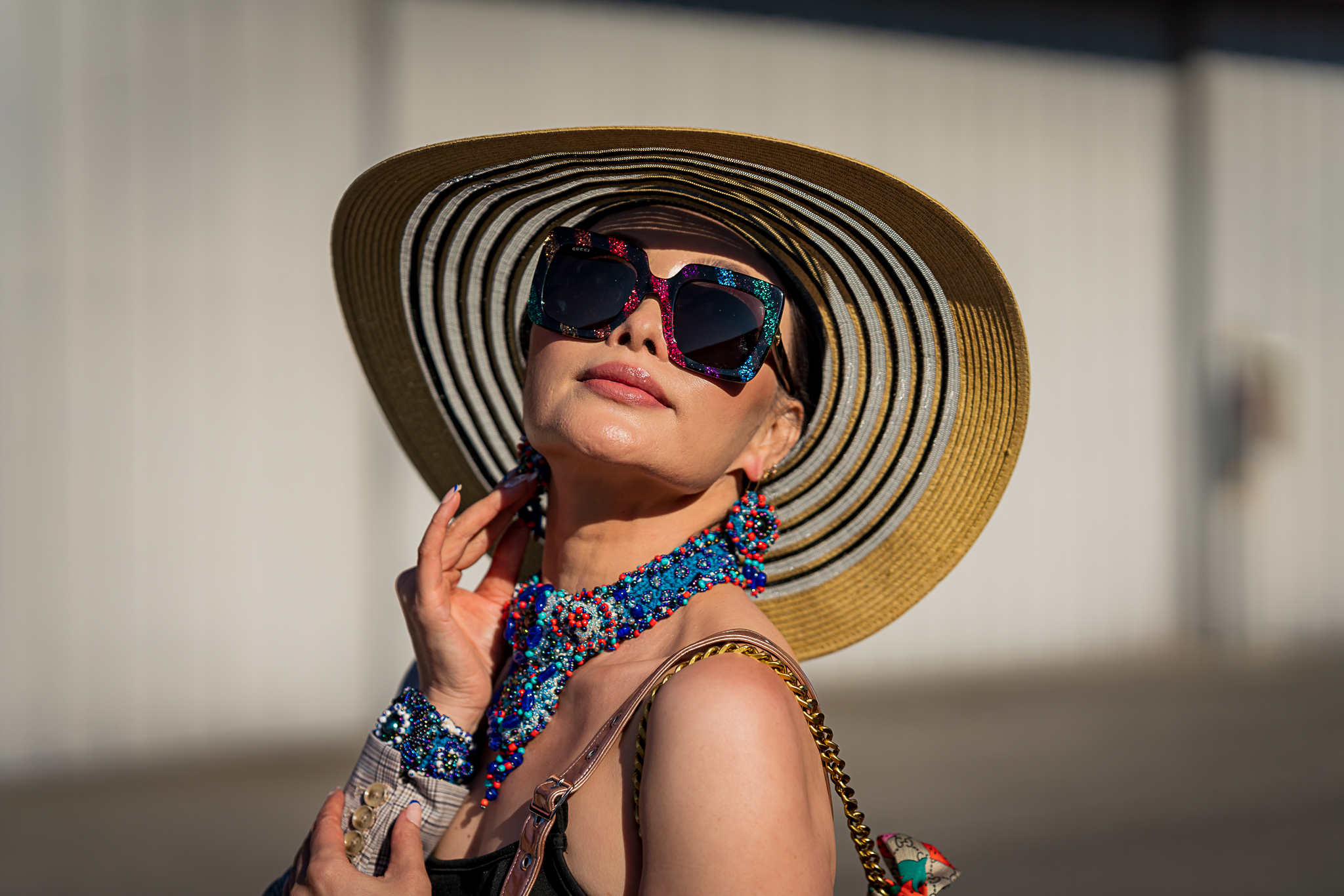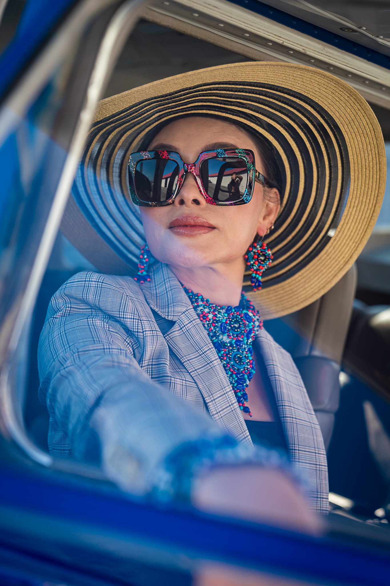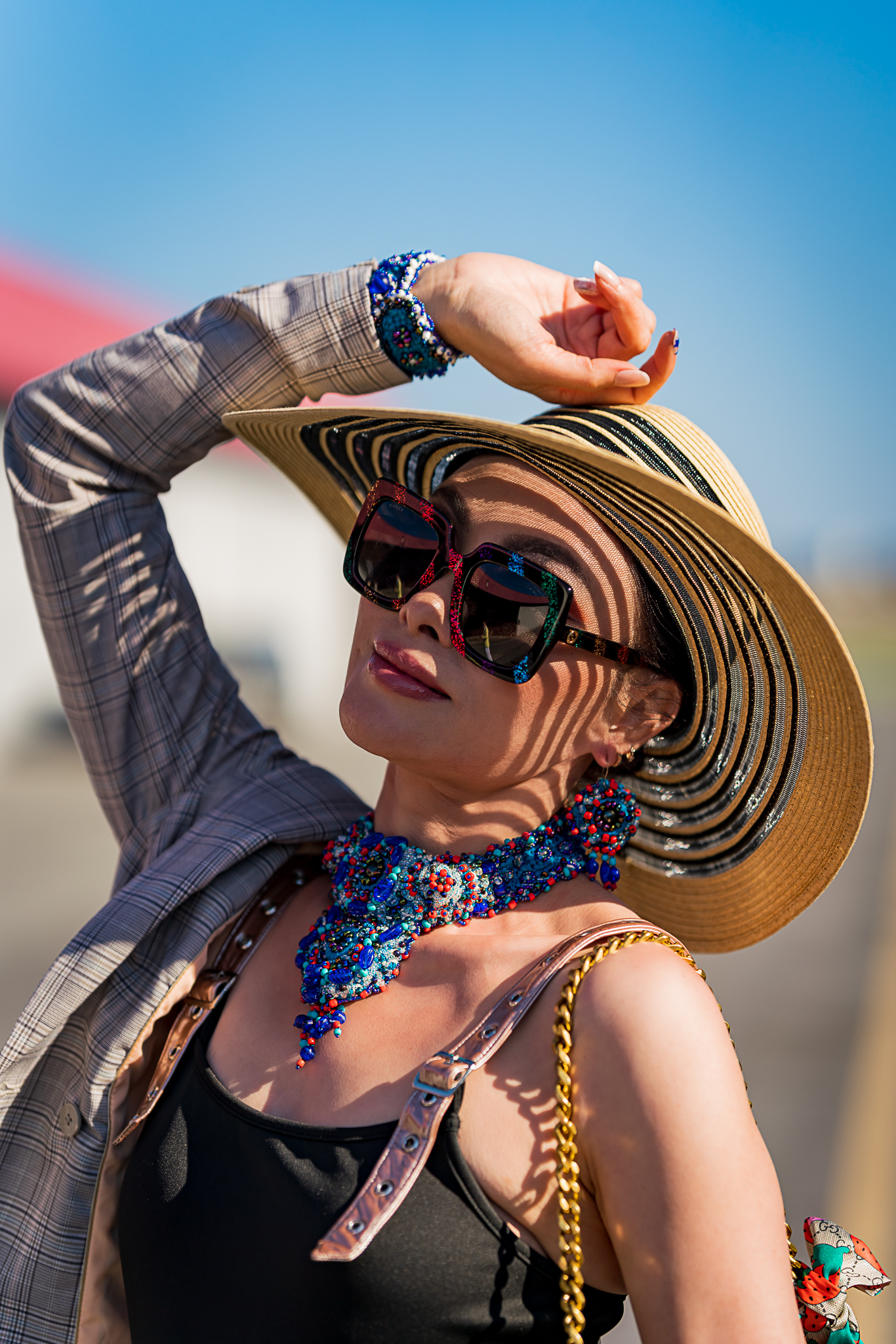 The creative director behind this photoshoot is Miae Nelson, an art fashion jewelry designer who envisioned an innovative way to showcase her remarkable and distinctive pieces. Working alongside her team, and Sebastien Belanger, who hosted the event, the group created a unique and captivating concept that blended the allure of an airfield with the elegance of high fashion.