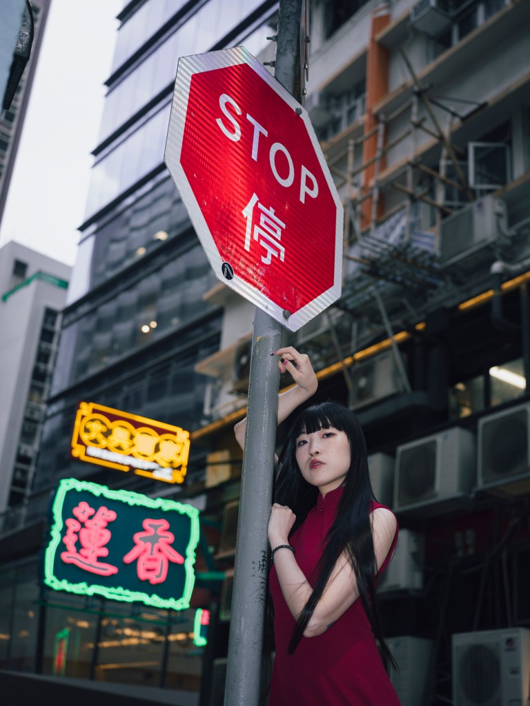 The best fashion editorial photography does not only show clothing or location. It reveals a person within a moment. Here, Merry’s red dress, black ink, long scroll, and the layered streets of Hong Kong all worked together, but the heart of the series was her presence. She became the artist, the subject, the performer, and the message.